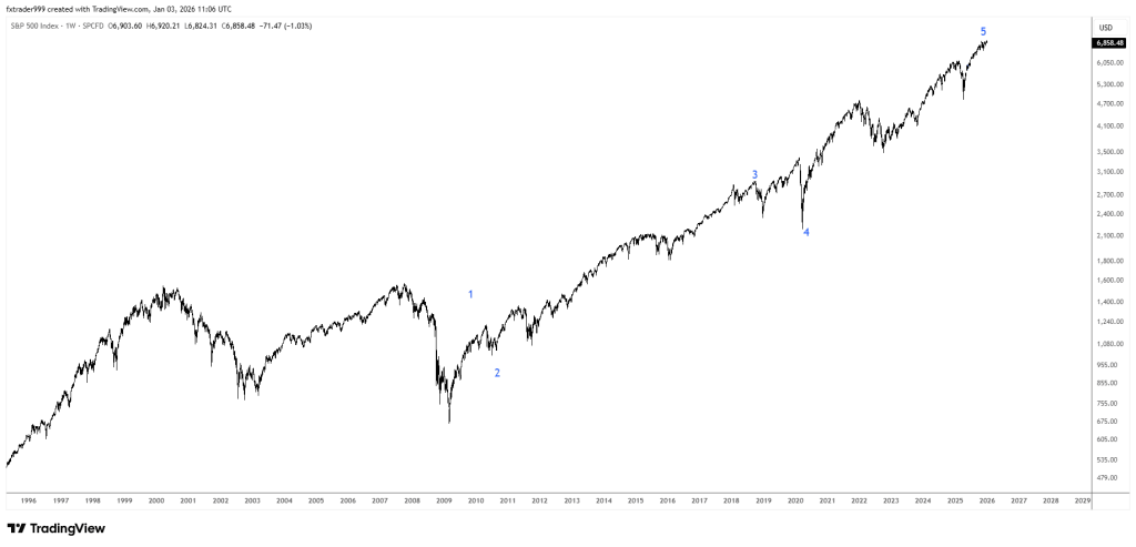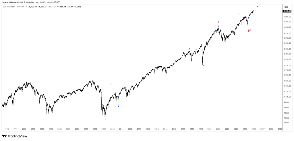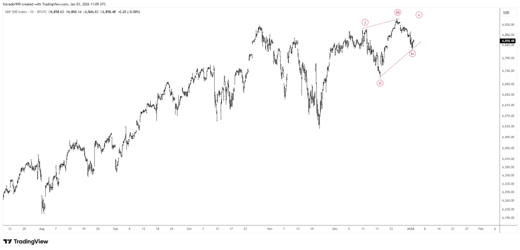 - Cuối cùng, nếu như việc đếm sóng ở khung dài khó khăn, việc nhận diện mẫu hình ở khung nhỏ lại dễ dàng hơn và hỗ trợ cho quyết định đầu tư dễ dàng hơn như ví dụ về SP500 dưới đây