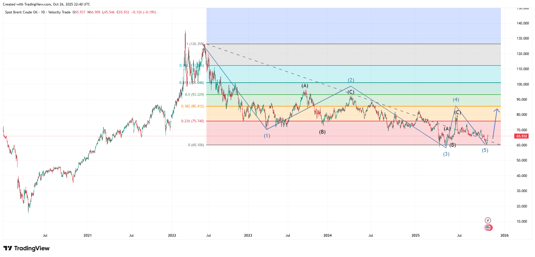 Brent đang kết thúc sóng 5 của mãu hình Diagonal, như vậy giá đang hồi phục A-B-C và sẽ hồi phục mạnh với mục tiêu 85 USD/thùng nhưng quá trình này cần thời gian nhé do sóng Diagonal hình thành từ 2022 cho tới giờ.