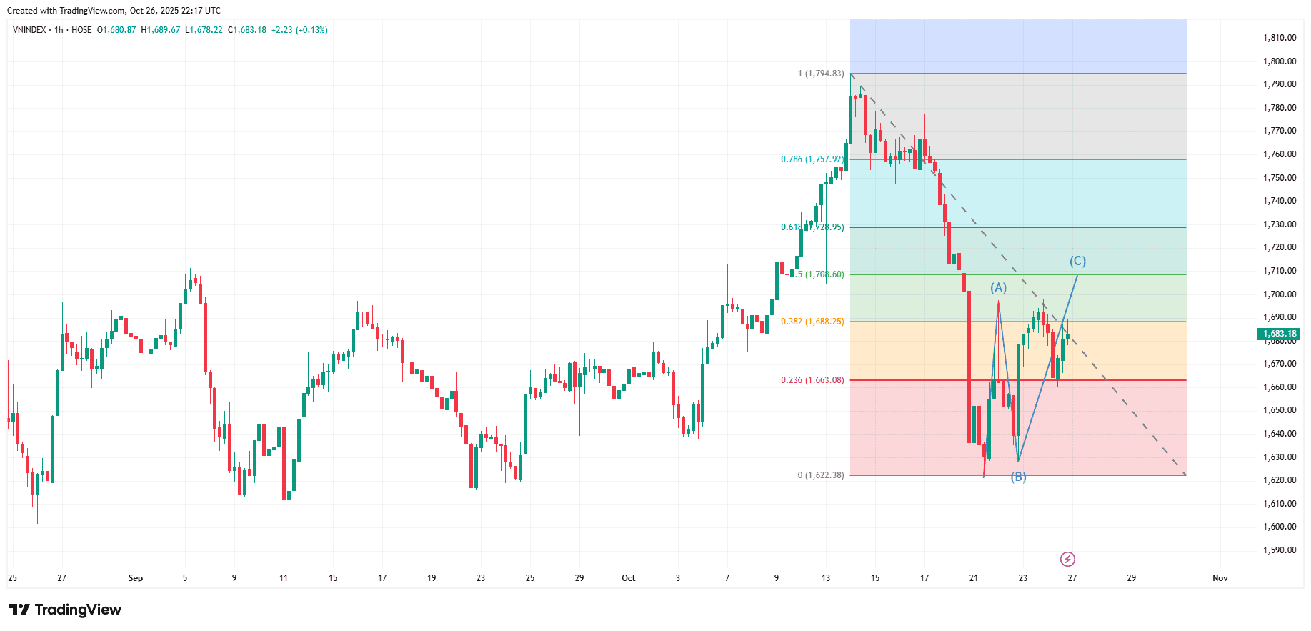 VNI đang trong pha hồi phục với cấu trúc rõ ràng là A-B-C nên người viết chắc chắc rằng chỉ số sẽ gặp cản tại khu vực