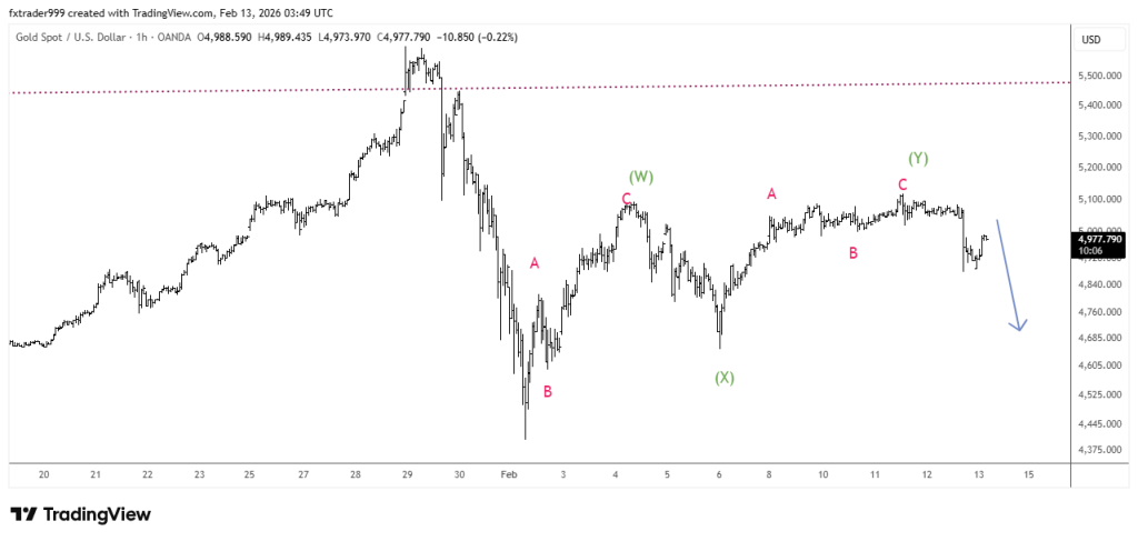 Giá đang hoàn thành cấu trúc sóng W-X Double Zigzag, đây là cấu trúc sóng hiệu chỉnh nên XAUUSD có thể đang quay trở lại sóng đẩy (impulsive wave) đi xuống.