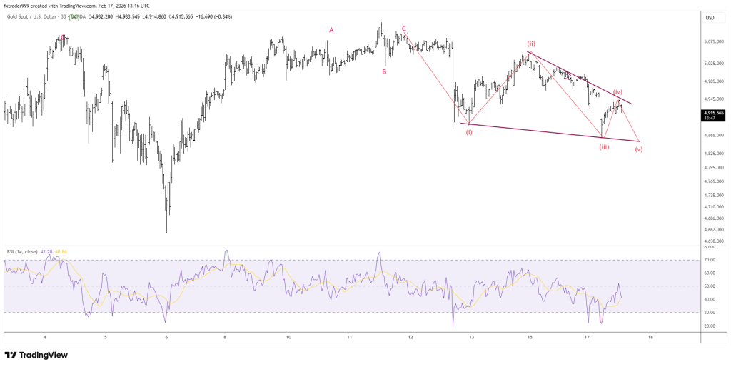 XAUUSD đang mở ra chân sóng-leg C của mẫu hình sóng chỉnh A-B-C, sóng C vẫn đang phát triển, chưa thể xác nhận kết thúc nhưng vùng dự kiến từ 4915-4970 USD/oz. Quan điểm đầu tư của admin là canh Sell theo sóng giảm lớn. Để có bức tranh sóng lớn, đọc giả vui lòng xem chi tiết cách đếm sóng ở các chart bên dưới. Admin cho rằng vàng còn dư địa giảm, NĐT tranh mua vàng vật chất ở thời điểm hiện tại. (ngày 03/02/2026)