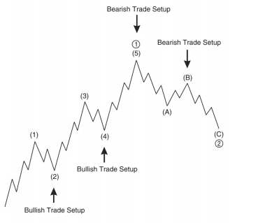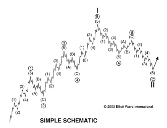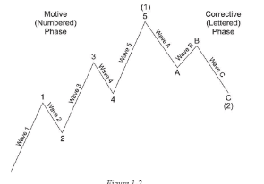 Môt chu kỳ của sóng Elliott sẽ gồm 5 sóng đi theo xu hướng chính và 3 sóng đi ngược xu hướng. Cụ thể, nếu 5 sóng hướng lên thì hình thành xu hướng chính là tăng trong khi 3 sóng đi xuống hình thành xu hướng chủ đạo là giảm